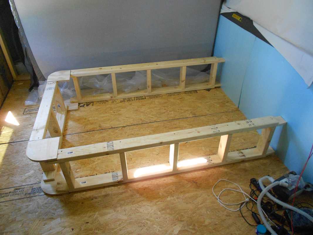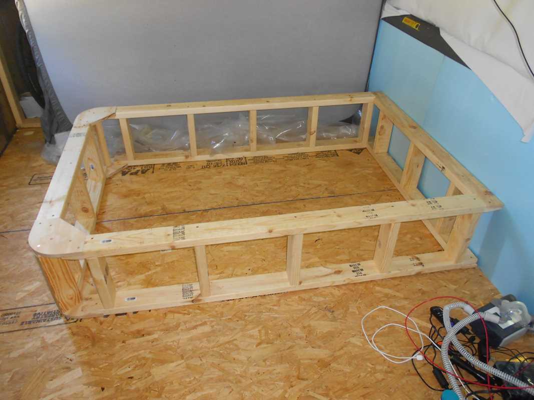 Most RV’s have a bed frame that provide storage underneath the mattress. I wanted the same. I also wanted rounded corners for a “modern” look and one that will, hopefully, be slightly more gentle on my toes when I smash them into it. That was it for requirements.