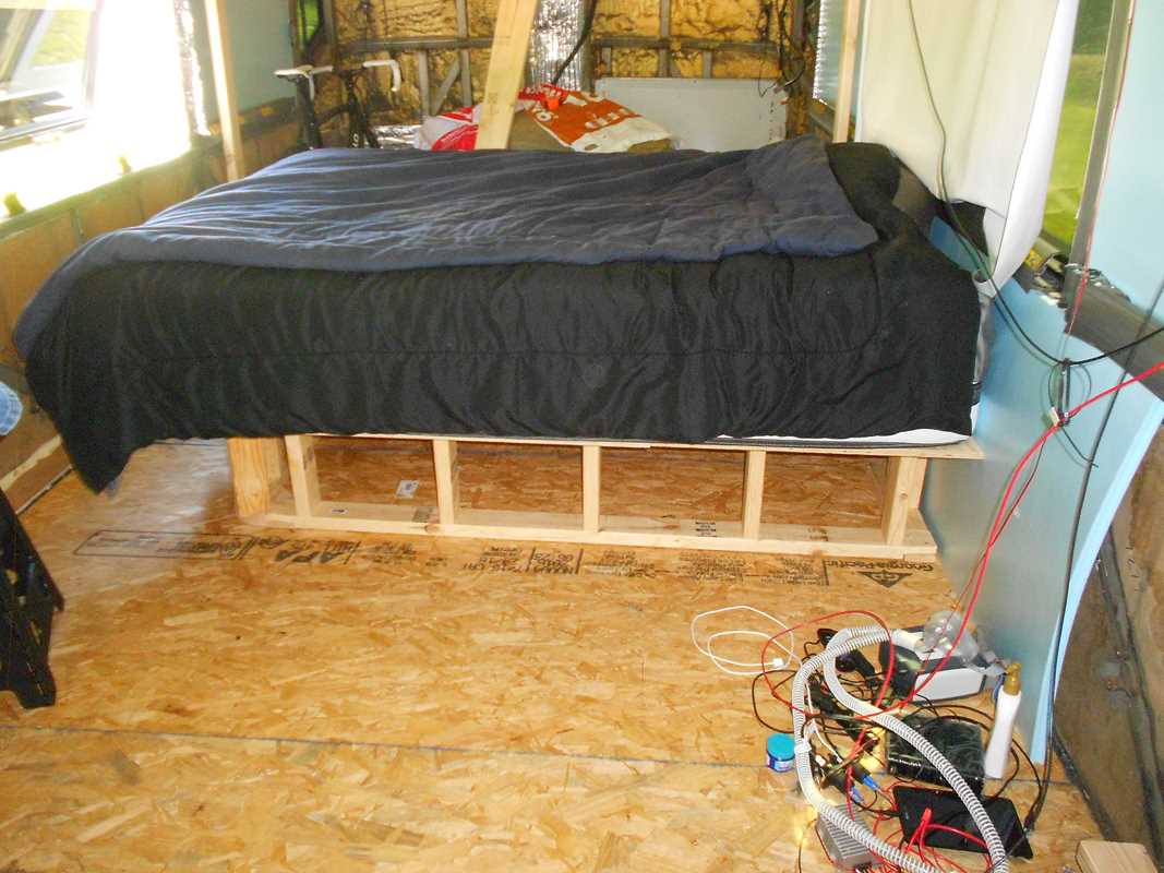 A bum arm on one side, a bum shoulder on the other, a back that hurts from all this bus conversion activity and…. well… I was tired of having to climb off the floor each morning. Even before a cup of coffee!