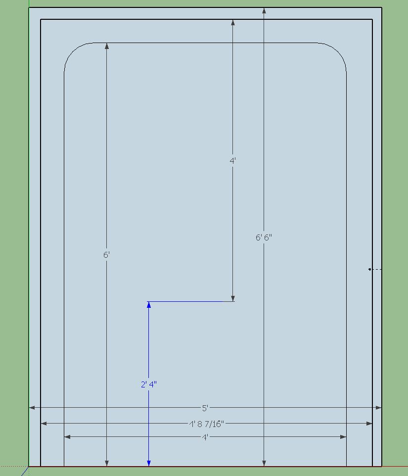 The most challenging part was the rounded corners. A 5″ radius looked about right on paper. I had to pull out all the stops and refer to my high school calculus to figure it all out. 🙂