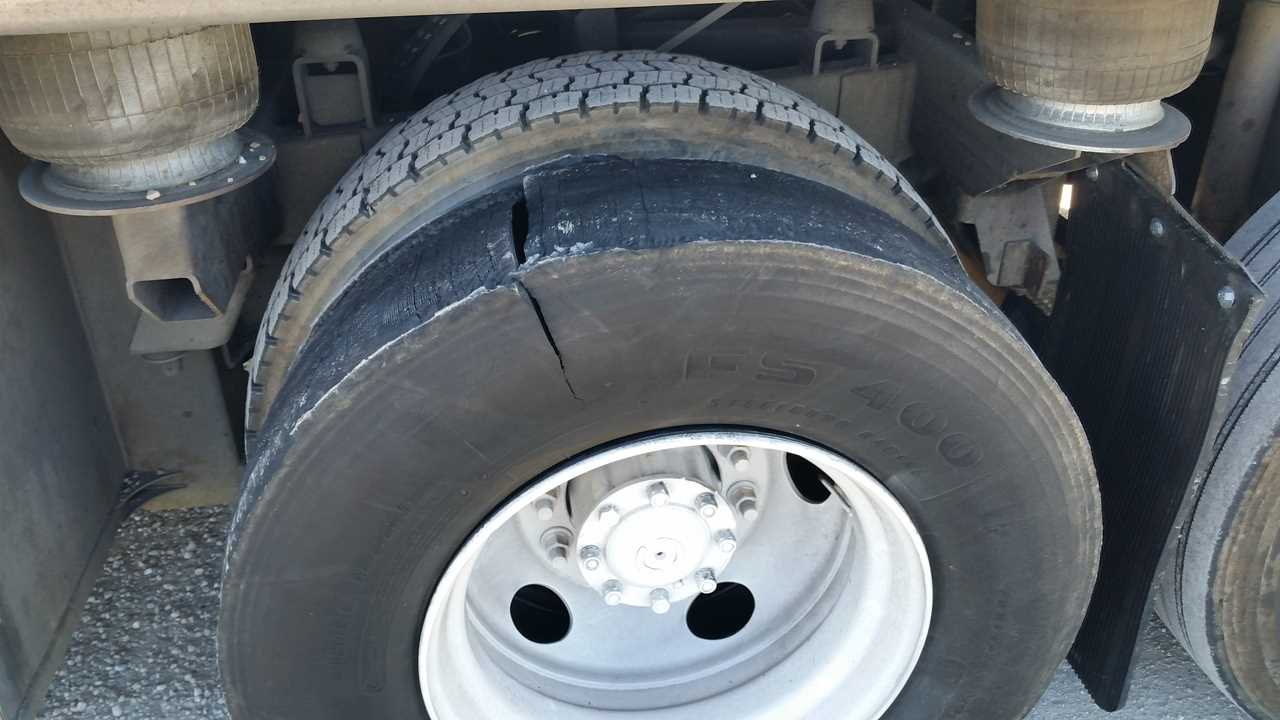 Notice that outside dual tire? It seems to be missing something – it’s tread!