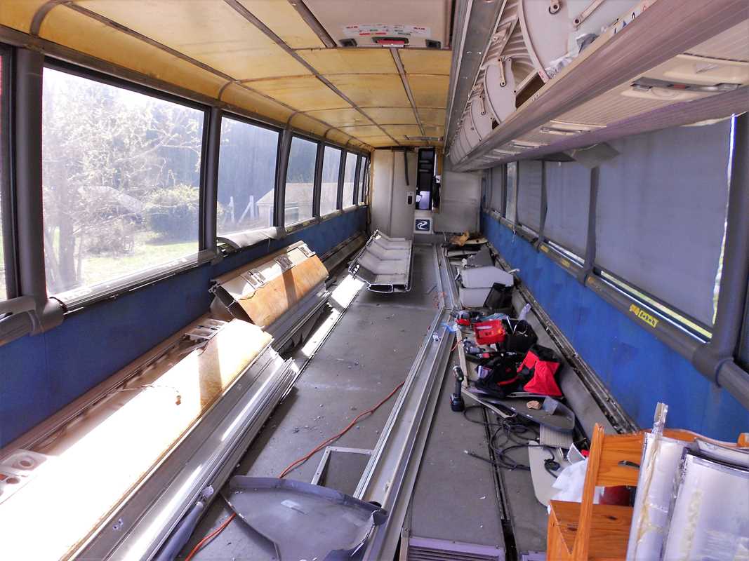 Those parcel racks were a real challenge! I have no doubt that MCI builds these buses without consideration for us “converters.” 🙂 So, some “difficulties” are expected. The bins appear to be a permanent fixture. I can imagine there is no need to ever remove them in normal “bus” operation.