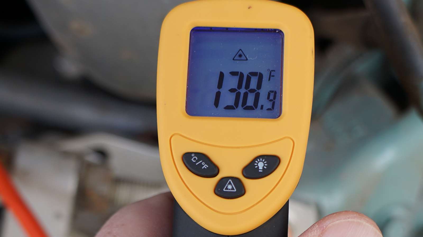 This photo is with the infrared thermometer pointing right at the point where the immersion heater screws into the manifold.