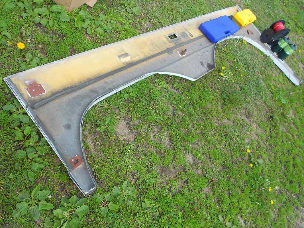 The brackets with bolts that secure the panel were cleaned up, bent back to straight, and primed. The spots on the panel where the brackets attach were cleaned up and sanded to provide a surface with some bite.
