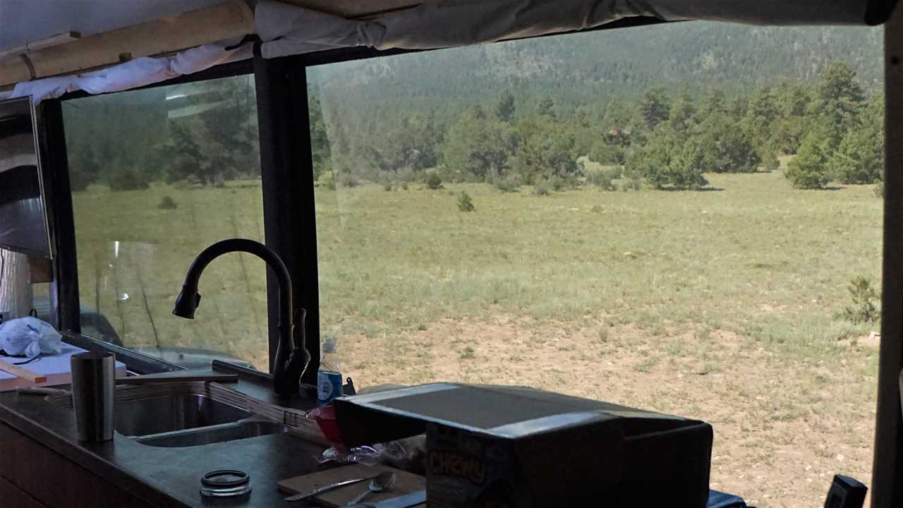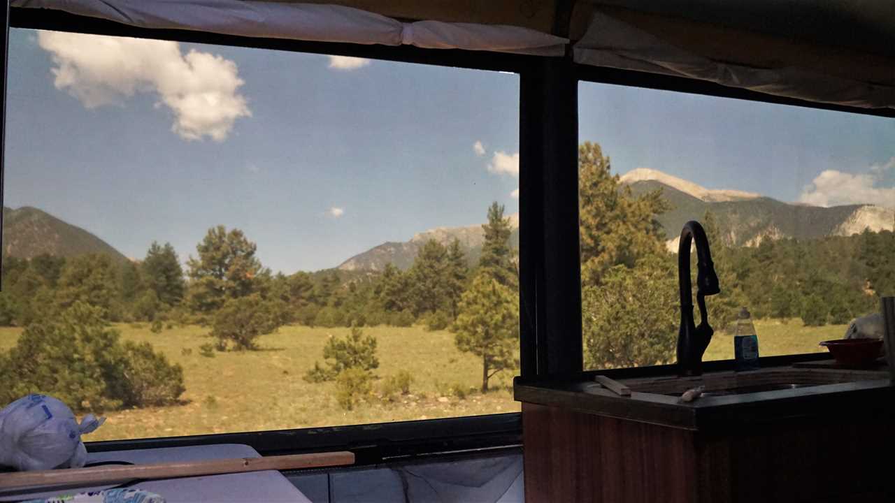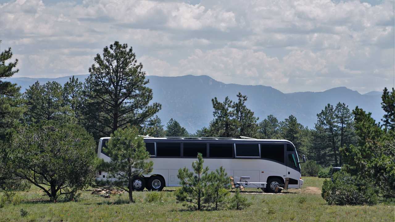Boondocking camping Gunnison National Forest Colorado Mountains Missy MCI bus conversion coyote