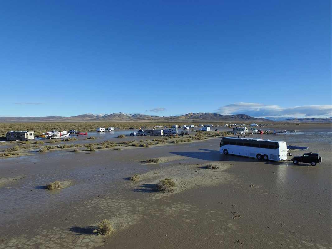 The ‘trace’ of rain that was planned turned into ‘more than a trace’ and the ‘dry’ lake bed turned into a ‘not dry lake bed.’ You can imagine our surprise. Everyone just stayed in their overnight accommodations until it dried enough to tip-toe around in the mud. Unless you were in a test that sitting in a low spot – which is now a mud puddle – there were quite a few of those. These photos were taken after a bit of drying had occurred.