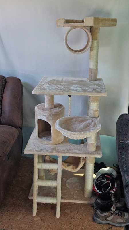 They have not yet spent much time at the very top but the middle two levels are heavily used.  They seem very happy to be able to leap from the dash to driver’s seat to tower of terror to couch – the entire length of the living room – without touching the ground!!