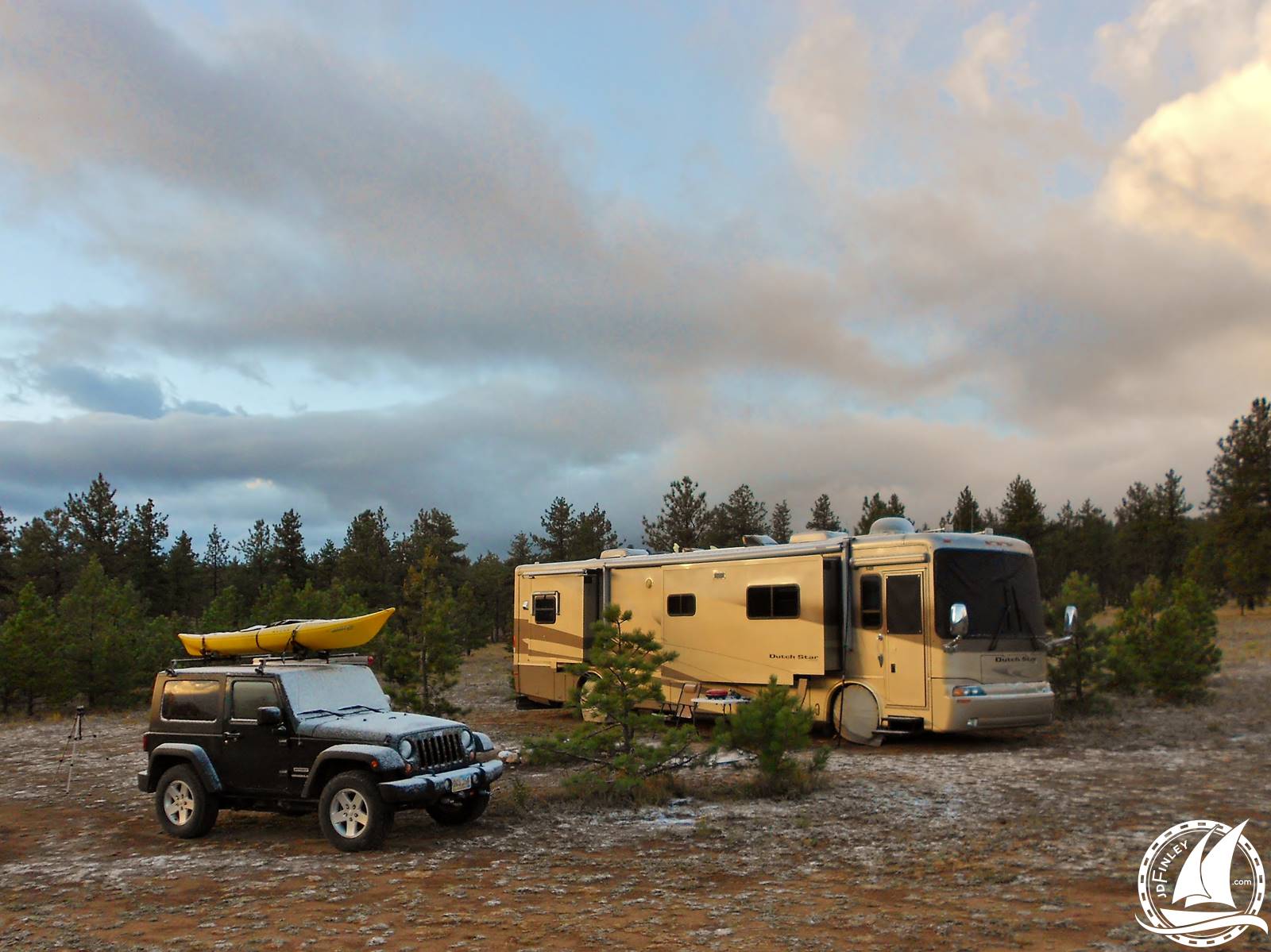 Newmar Dutch Star camping gunnison national forest winter cold heater solar snow